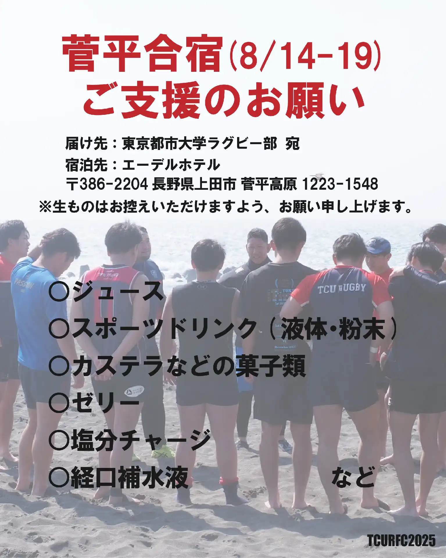平素より東京都市大学ラグビー部へのご支援ご声援を賜り、誠にありがとうございます。